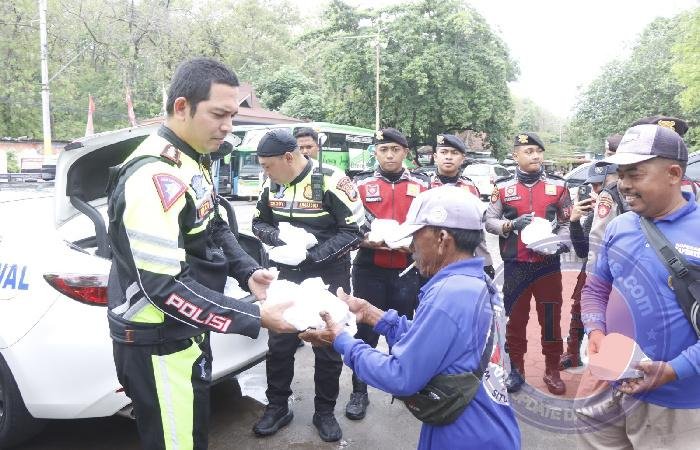 Tak hanya patroli saja, Kapolres Situbondo juga membagikan ratusan nasi kotak kepada masyarakat yang ditemui seperti juru parkir, ojek online, sopir angkutan, pekerja perahu dan penjaga pintu masuk wisata pantai Pasir Putih.