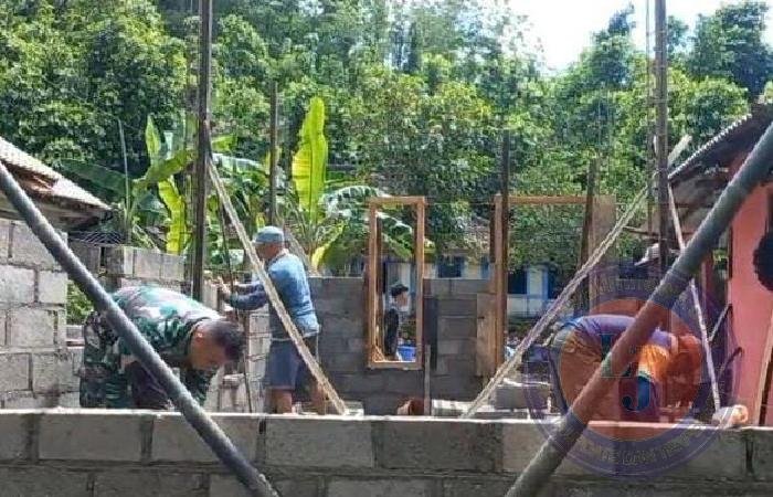 PACITAN lintasjatimnews – Sinergitas TNI bersama rakyat, Babinsa Koramil 0801/12 Pringkuku, Serda Youantio melaksanakan karya bakti membantu pembangunan rumah warga binaannya di Dusun Dersono, Desa Dersono Kecamatan Pringkuku, Kabupaten Pacitan, Selasa(07/01/2025).