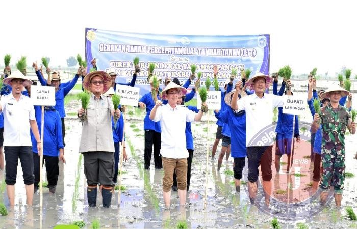 Pemerintah Kabupaten Lamongan menegaskan komitmennya mendukung program swasembada pangan nasional. Hal ini disampaikan Bupati Lamongan Yuhronur Efendi dalam Rakor Percepatan Luas Tambah Tanam Padi bersama Direktur Jenderal Tanaman Pangan Yudi Sastro di Desa Kebalanpelang Kecamatan Babat