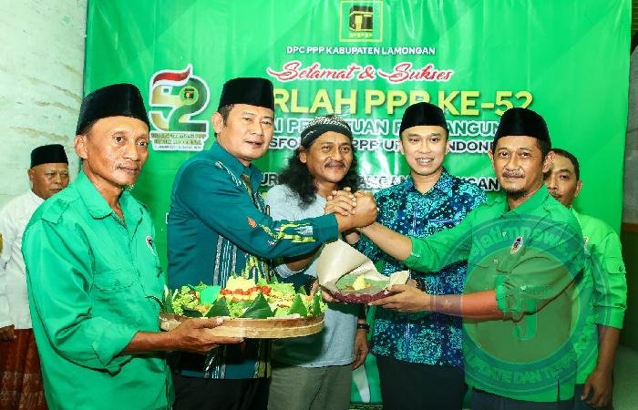 Tasyakuran Hari Lahir (Harlah) PPP ke 52 ini dihadiri seluruh kader DPC PPP Kabupaten Lamongan dan juga Bupati serta wakil Bupati Terpilih Kabupaten Lamongan, Yurohnur Effendi dan Dirham Aksara.