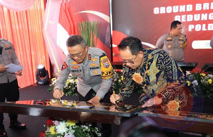 Selain meresmikan pembangunan Gedung Bidhumas Polda Jatim, Irjen Pol Drs Imam Sugianto,M.Si bersama Pj Gubernur Jawa Timur Adhy Karyono dan Direktur PT Wismilak juga melaksanakan ground breaking pembangunan gedung Ditreskrimsus, Kamis (16/1/2025) sore.