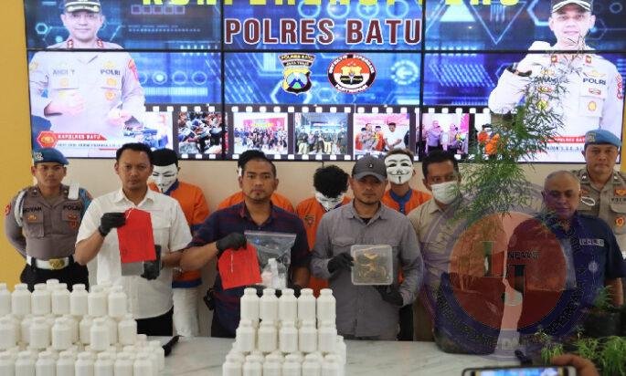 Kasatnarkoba Polres Batu, AKP Ariek Yuly Irwanto membeberkan hasil penangkapan tersebut melalui Konferensi Pers yang dilaksanakan di Rupatama Polres Batu Polda Jatim, Rabu, (15/1/25).
