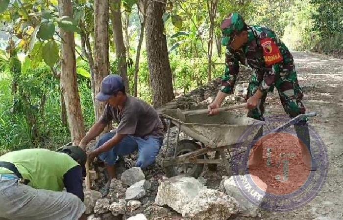 Bentuk Kedekatan TNI dan Rakyat, Babinsa Koramil 0801/11 Donorojo Bangun Talud