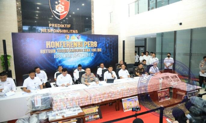 JAKARTA lintasjatimnews – Dalam konferensi pers di Mabes Polri, Direktur Tindak Pidana Siber (Dirtipidsiber) Bareskrim Polri, Brigjen Himawan Bayu Aji, mengungkapkan hasil kerja keras dalam pemberantasan judi online. Polri berhasil membongkar tiga kasus besar yang melibatkan situs judi daring dengan total aset yang disita mencapai Rp61 miliar. Ketiga situs tersebut adalah H5GF777, RGO Casino, dan Agen 138, yang beroperasi secara nasional dan internasional.