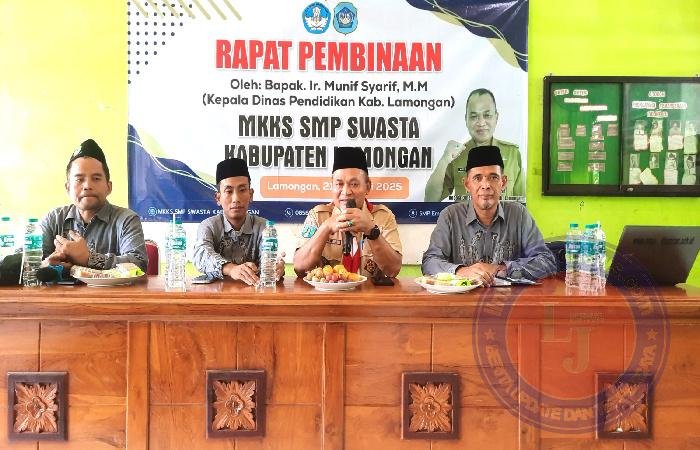 LAMONGAN lintasjatimnews – Musyawarah Kerja Kepala Sekolah (MKKS) SMP Swasta Kabupaten Lamongan mengadakan Rapat Pembinaan dalam persiapan pelaksanaan Sumatif Akhir Semester (SAS) Genap kelas IX Tahun Pelajaran 2024-2025.