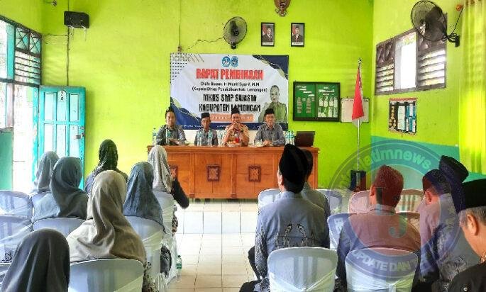 Acara Rapat Pembinaan dibuka Ali Yafi, SPdI (Kepala SMP Empat Lima Babat) memberikan kesempatan kepada Ketua MKKS SMP Swasta memimpin rapat dengan agenda utama persiapan pelaksanaan asemen SAS Genap bagi kelas IX Tahun Pelajaran 2024-2025.