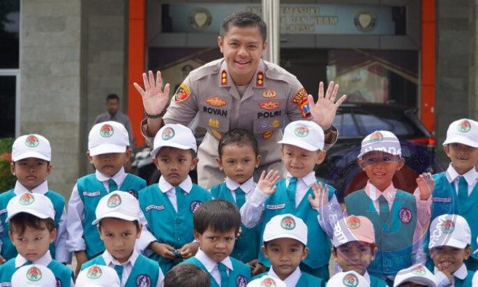 GRESIK lintasjatimnews.com – Halaman Mapolres Gresik pagi itu dipenuhi keceriaan. Kapolres Gresik, AKBP Rovan Richard Mahenu, dengan penuh senyuman menyambut kedatangan rombongan anak-anak dari Taman Kanak-Kanak (TK) Kusuma Bangsa yang berkunjung ke Mapolres Gresik.