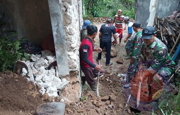 “ Tanah longsor terjadi pada hari Senin sore yang langsung kami monitor untuk selanjutnya melakukan tindakan peninjauan ke lokasi kejadian serta tindakan penanganan sekaligus kerja bakti dengan warga sekitar, “ ucap Kapten Inf winarko.