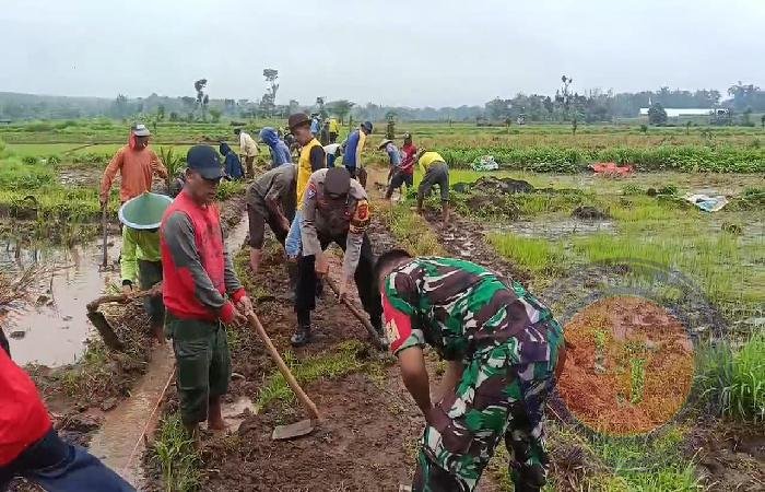 NGAWI lintasjatimnews – Babinsa Koramil 0808/08 Jogorogo, Kopka Fauzi bersama masyarakat melaksanakan giat karya bhakti pembuatan saluran irigasi untuk pengairan sawah bersama warga di Desa Jogorogo, Kecamatan Jogorogo, Kabupaten Ngawi, Kamis (23/01/2025).