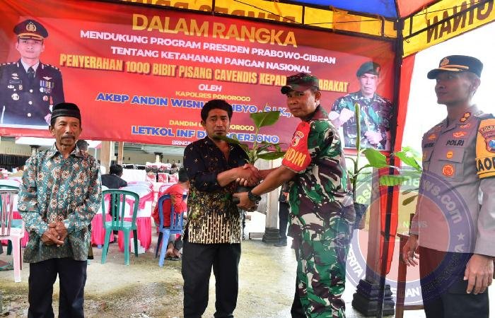 Tidak hanya berupa bantuan sosial saja, dalam kegiatan yang dihadiri langsung Komandan Kodim 0802/Ponorogo Letkol Inf Dwi Soerjono dan Kapolres Ponorogo AKBP Andin Wisnu Sudibyo, SIK, MH. juga digelar kegiatan penyebaran benih ikan dan penanaman bibit pisang cavendish dalam rangka mendukung program ketahanan pangan nasional.