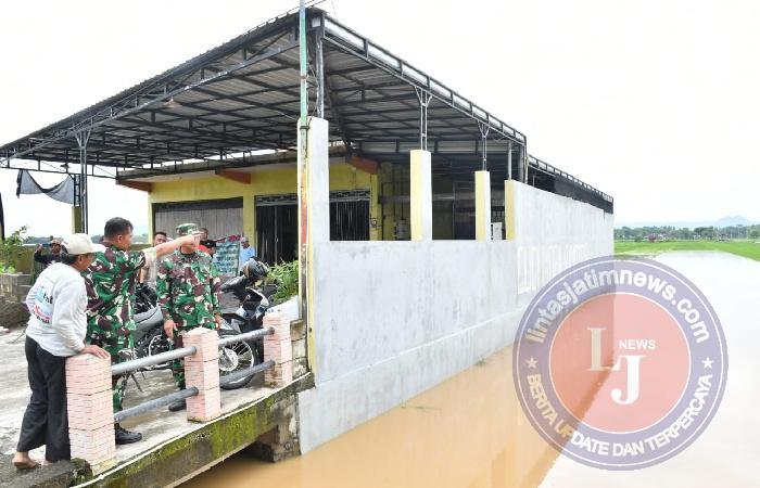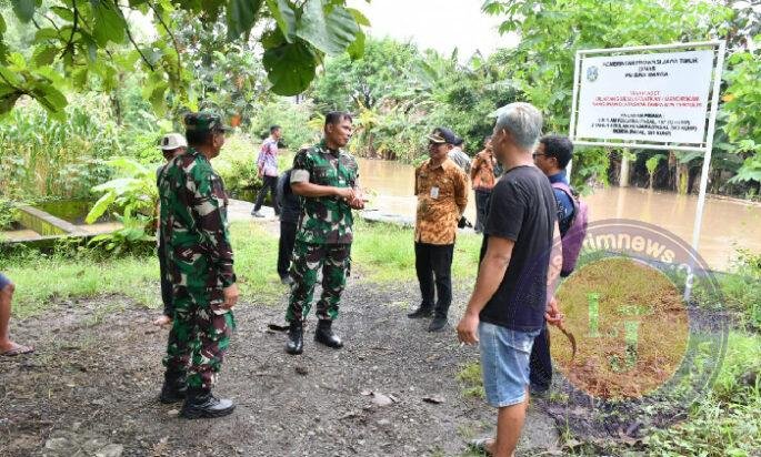 PONOROGO lintasjatimnews – Komandan Kodim 0802/Ponorogo Letkol Inf Dwi Soerjono hari ini meninjau sawah milik warga Dukuh Pandan Derek Desa Winong Kecamatan Jetis Kabupaten Ponorogo yang terendam akibat sungai yang meluap karena air hujan, Kamis (23/01/2025).