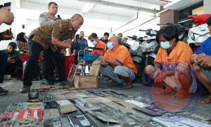 Pada kesempatan ini, Kombes Pol Farman menyebut, ada sejumlah barang bukti kendaraan bermotor, termasuk plat nomor sebanyak 114 hasil curian yang kemudian dijual di beberapa daerah.