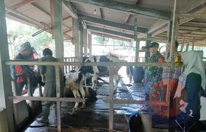 Babinsa 04 Tegalombo Serda Deris menyampaikan bahwa kegiatan vaksinasi PMK ini terus dilakukan untuk mencegah terjadinya penyebaran wabah penyakit pada hewan ternak.