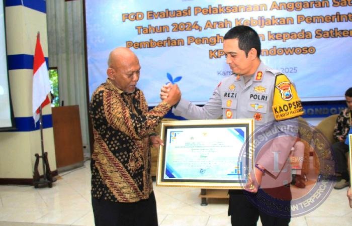 Kapolres Situbondo AKBP Rezi Dharmawan, S.I.K., M.I.K. menerima penghargaan Kinerja IKPA Terbaik tersebut secara langsung yang diserahkan oleh Kepala KPPN Bondowoso A. Budi Dayantoro bertempat di aula kantor KPPN Bondowoso, Kamis (23/1/2025).