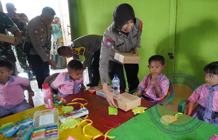 Dalam kesempatan berbagi ini, anggota Binmas juga mengajak anak-anak bermain serta semangat agar giat belajar secara sungguh-sungguh supaya bisa mewujudkan cita-cita mereka nanti.