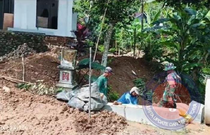PACITAN lintasjatimnews – Peduli terhadap tempat ibadah, Sertu Tri sutrisno selaku Babinsa Koramil 0801/07 Ngadirojo dibantu anggota babinsa lainnya bergotong-royong bersama Masyarakat melaksanakan kerja bakti pembuatan Teras masjid dan talud, berlokasi di Dusun Krajan, Desa Bodaq, Kecamatan Ngadirojo, Kabupaten Pacitan.Minggu(26/01/2025).