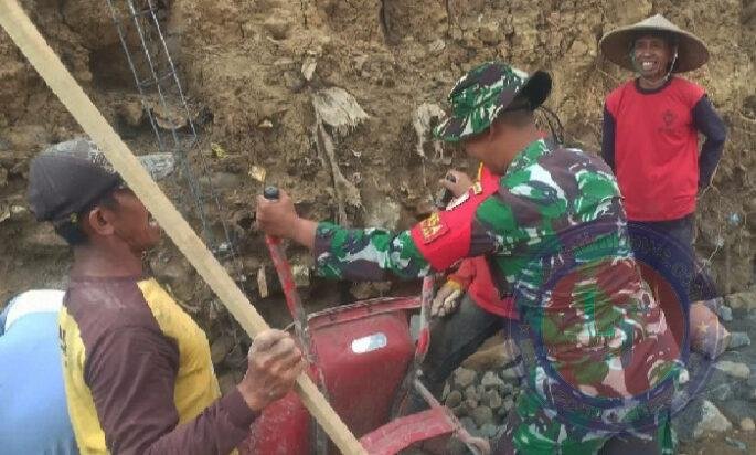 Kekompakan luar biasa terlihat di lokasi pembangunan. Babinsa dan warga saling bahu-membahu, mulai dari menggali tanah hingga memasang material tanggul. Semangat gotong-royong yang hidup di tengah masyarakat menjadi bukti kuatnya kebersamaan untuk mewujudkan desa yang tangguh.