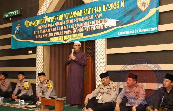 “Sebagai abdi negara, kita harus menjadikan peringatan Isra Miraj ini sebagai dorongan untuk meningkatkan kualitas ibadah dan kinerja profesional, demi mewujudkan Polri yang Presisi dan mendukung Indonesia maju,” ujar Kapolresta Banyuwangi.