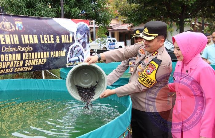 SUMENEP lintasjatimnews – Dalam upaya mendukung program ketahanan pangan nasional, Kapolres Sumenep, AKBP Henri Noveri Santoso, S.H., S.I.K., M.M., menabur 12.000 benih ikan di kolam Polres Sumenep Polda Jatim, Jl Urip Sumoharjo No.35 Desa Pabian Kecamatan Kota Sumenep Kabupaten Sumenep, Rabu (29/1/2025).