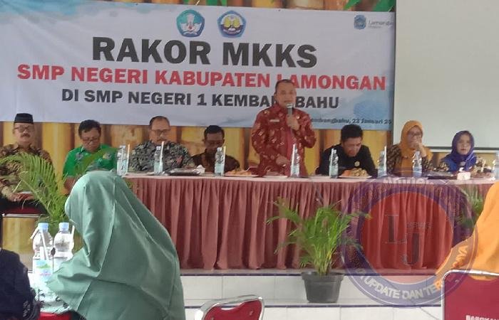 Rapat Koordisi MKKS SMP Negeri Lamongan dihadiri seluruh kepala SMP Negeri di Kabupaten Lamongan sebanyak 48 kepala sekolah. Hadir pula dalam Rakor tersebut, Kepala Bidang SMP Dinas Pendidikan Kabupaten Lamongan, Nuanggal Isabandi, S.Pd., M.Pd., Koordinator Pengawas, Drs. Jumaidi, M.Pd., dan Dram Anna Mifasiro Hayati, M.Pd., Pembina SMP Negeri 1 Kembangbahu.