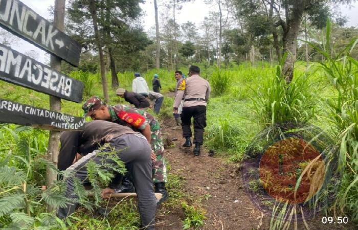 TNI Polri dan Petugas Gabungan Lakukan Penanaman Pohon Endemik Dijalur Pendakian Gancik