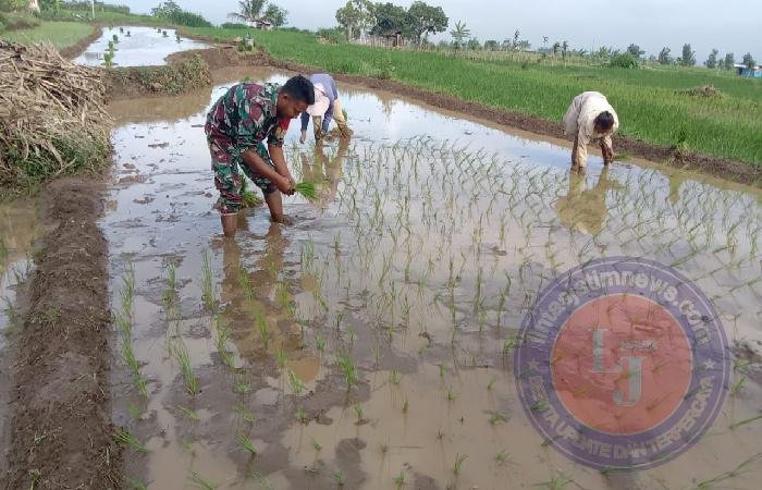 Serda Heru Peasetyo mengungkapkan kegiatan yang dilakukan ini sebagai wujud dukungan TNI khususnya prajurit kewilayahan yaitu Babinsa dalam mendukung ketahanan pangan, dengan semangat ikut serta terjun langsung ke sawah membantu petani desa binaannya saat menanam padi.
