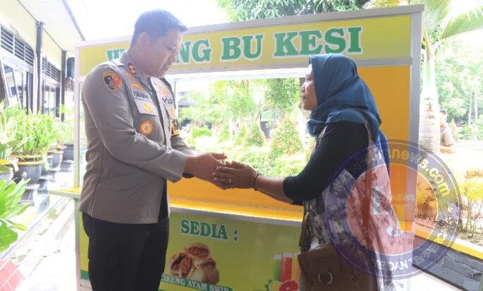 Kapolres Malang, AKBP Danang Setiyo, menyalurkan bantuan sarana pengembangan Usaha Mikro, Kecil, dan Menengah (UMKM) kepada tiga keluarga terdampak dalam sebuah acara yang berlangsung di Mapolres Malang, Sabtu (1/2/2025).
