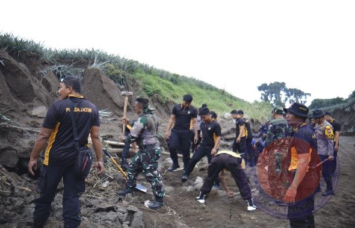 Kapolres Kediri AKBP Bimo Ariyanto S.H., S.I.K, melalui Kasat Samapta Polres Kediri AKP I Nyoman Sugita menuturkan kegiatan ini merupakan tanggap bencana dan kerja bakti bersama warga sekitar.