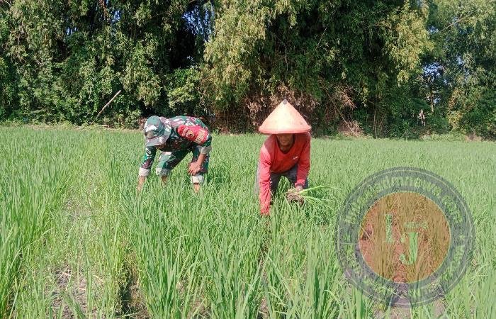 NGAWI lintasjatimnews – ketahanan pangan di kewilayahan terus ditingkatkan oleh Aparat TNI di wilayah. Seperti yang dilakukan Serda Pipit Babinsa Koramil 0805/06 Kwadungan Kodim 0805/Ngawi dengan turun langsung ke sawah mendampingi petani dalam mendukung program ketahanan pangan, kali ini kegiatan pendampingan perawatan tanam padi yang berada di Desa Sumengko Kec. Kwadungan Kab. Ngawi, Jumat (7/2/2025).