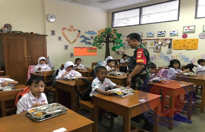 Lebih lanjut Sertu Budiono menjelaskan bahwa pendampingan ini bertujuan memastikan kelancaran pembagian makanan sekaligus memberikan edukasi kepada para siswa mengenai pentingnya pola makan sehat.