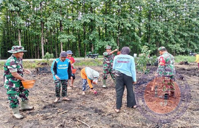NGAWI lintasjatimnews – Pembinaan ketahanan pangan di kewilayahan terus ditingkatkan oleh Aparat TNI di wilayah. Seperti yang dilakukan Serka Ikhwan Babinsa Koramil 0805/13 Kedunggalar Kodim 0805/Ngawi dengan turun langsung ke lapangan mendampingi kegiatan petani dalam kegiatan tanam jagung bertempat di Desa Bangunrejo Kidul Kec. Kedunggalar, Selasa (11/02/2025).