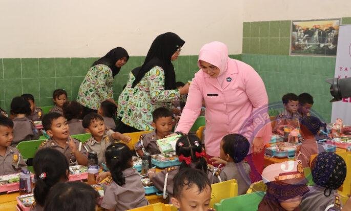 Sukseskan MBG, Ketua YKB Jatim Berbagi Makan Bergizi di TK Kemala Bhayangkari 78 Pamekasan