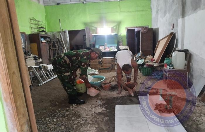 SURAKARTA lintasjatimnews – Babinsa Joyotakan Koramil 03/Serengan Kodim 0735 Surakarta Serka Rumbawa dan Sertu Harnawan bersama warga gotong royong melaksanakan pemasangan keramix bagi Rumah Tidak Layak Huni ( RTLH ) bertempat di Rumah Bapak Tumino Rt 01 Rw 03 Kelurahan Joyotakan Serengan Kota Surakarta, Kamis 13 Februari 2025, pukul 08.00 Wib