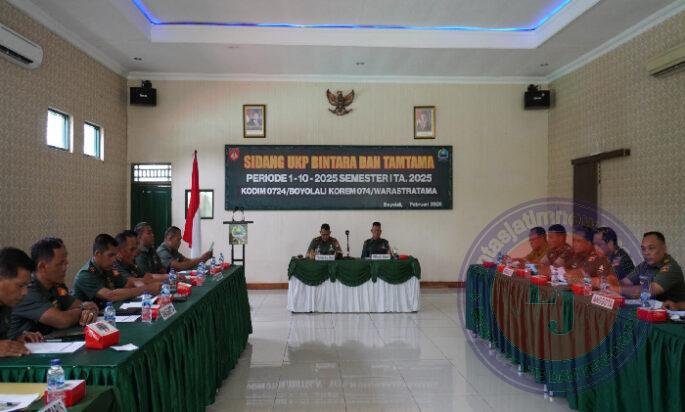 BOYOLALI lintasjatimnews – Dandim 0724/Boyolali Letkol Inf Wiweko Wulang Widodo, S.Pd.M.Han memimpin langsung acara Sidang Panitia Pangkat dan Karier (Pankar) usul jabatan bagi anggota Bintara dan Tamtama Kodim 0724/Boyolali