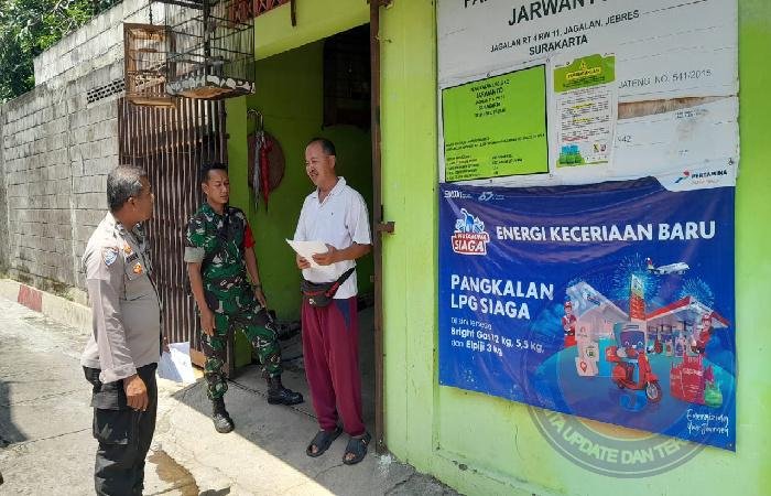 SURAKARTA lintasjatimnews – Untuk mengantisipasi hal-hal yang tidak diinginkan saat pendistribusian Gas LPG 3 Kg, Babinsa Kelurahan Jagalan Koramil 04/Jebres Kodim Surakarta Serka Lauwe dan Serda Abdullah bersama dengan Aiptu Tarmuji selaku Bhabinkamtibmas Kelurahan Jagalan laksanakan monitoring pendistribusian Gas LPG di wilayah binaanya bertempat di pangkalan Gas LPG milik Bapak Jarwanto (55) Rt 04 Rw 11,Kelurahan Jagalan Kecamatan Jebres, Selasa, (18/02/2024).