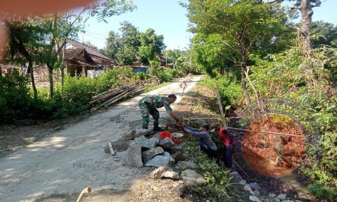 Kerja bakti ini melibatkan berbagai elemen masyarakat, mulai dari perangkat desa hingga pemuda setempat. Serda Suharjito dengan sigap turun langsung membantu proses pembangunan, mulai dari mengangkut material hingga menata batu pondasi.
