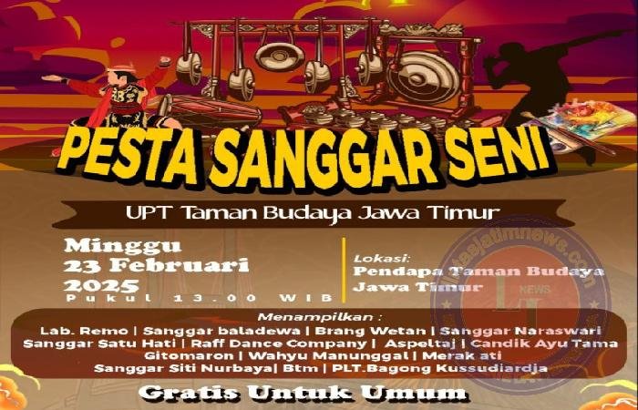 SURABAYA lintasjatimnews – Awal tahun 2025 ini, Dinas Kebudayaan dan Pariwisata Provinsi Jawa Timur melalui UPT Taman Budaya Jawa Timur, kembali menghadirkan pergelaran seni yang dapat dinikmati oleh masyarakat pecinta budaya. Dua acara utama siap digelar pada bulan Februari 2025 dengan menampilkan pertunjukan ludruk serta ekspresi seni dari berbagai sanggar di Jawa Timur.