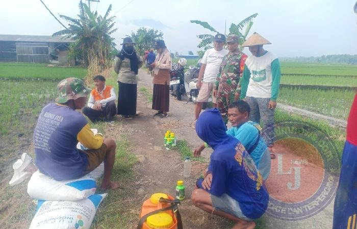 NGAWI lintasjatimnews – Babinsa Koramil 0805/11 Widodaren Kodim 0805/Ngawi Sertu Joko Priyanto bersama PPL dan Poktan melaksanakan Pendampingan Gerakan Pengendalian (GERDAL) Pengendalian Organisme Penyakit Tanaman (POPT) Padi di area persawahan Desa Sekarputih Kecamatan Widodaren, Kamis (20/02/2025).