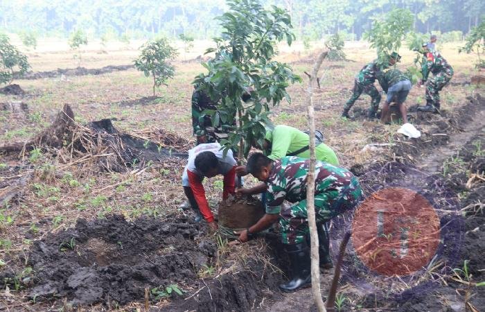 NGAWI lintasjatimnews – Agroforestri pangan adalah sistem pertanian yang menggabungkan tanaman pertanian dan kehutanan untuk meningkatkan produksi pangan, karena pola tanam ini merupakan salah satu alternatif perluasan areal tanaman pangan dalam rangka mendukung swasembada pangan. Kodim Ngawi bekerja sama dengan Dinas Pertanian serta Dinas Kehutanan kabupaten Ngawi melakukan penanaman sistem Agroforestri hari ini, dengan menanam pohon alpukat sejumlah 300 pohon dan tanaman jagung di area lahan perhutani di Desa Bangunrejo Lor, Kecamatan Kedunggalar Kabupaten Ngawi. Kamis (20/02/2025).