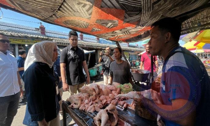 Dalam sidak tersebut, petugas Satgas Pangan menyisir lapak-lapak pedagang untuk memastikan ketersediaan bahan pokok seperti beras, gula, minyak goreng, telur, cabai, bawang dan daging tetap tersedia dalam jumlah yang cukup.