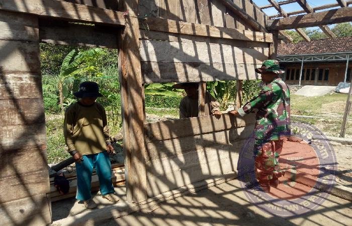 NGAWI lintasjatimnews – Babinsa Koramil 0805/11Widodaren,Kodim 0805 Ngawi Sersan Mayor Ulin Noha, kembali menunjukkan kepeduliannya terhadap masyarakat dengan terlibat langsung dalam kegiatan gotong royong rehab rumah warga. Kegiatan ini bertempat di Desa Kedung Gudel, Kecamatan Widodaren, Kabupaten Ngawi. Minggu (23/02/2025).