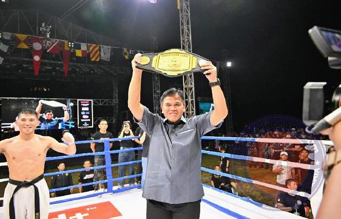 DENPASAR lintasjatimnews – Prajurit Puslatdiksarmil Kodiklatal bernama Letda Laut (KH) Brian Alfa Ferdinand Lawitan berhasil raih Sabuk Emas dalam Main Event Mixed Martial Arts (MMA) Kasal Cup 3 yang telah dilaksanakan sebagai rangkaian kegiatan 5th Multilateral Naval Exercise Komodo (MNEK) 2025, bertempat di Lapangan Renon, Denpasar, Bali. Selasa (18/02/2025).