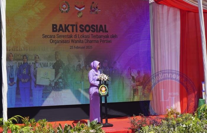 NGAWI lintasjatimnews – Dalam rangka memperingati Hari Ulang Tahun (HUT) ke-61 Dharma Pertiwi, menggelar kegiatan bakti sosial (baksos) secara serentak di 1.430 titik di seluruh Indonesia. Kegiatan Kali ini Bertempat di Makodim 0805 Ngawi, Korem 081 Dsj yang dipimpin langsung oleh Wakil Ketua Pengurus Dharma Pertiwi Daerah E, Ny. Mila Agung Trisnanto, ini juga berhasil mencetak rekor dari Museum Rekor Dunia Indonesia (MURI) sebagai bakti sosial serentak dengan peserta organisasi wanita terbanyak di Indonesia. Selasa (25/02/2025).
