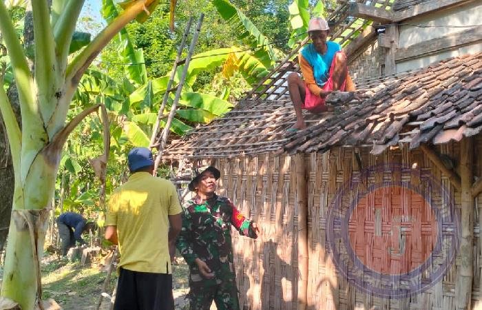 NGAWI lintasjatimnews – Anggota Koramil Widodaren Kodim 0805/Ngawi Serka Sambang melaksanakan kerja bakti dengan warga masyarakat dengan sasaran pembongkaran rumah mbah Simun (71) warga Desa Sidolaju Kecamatan Widodaren, Rabu (26/02/25).