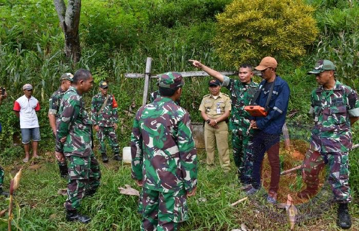 PONOROGO lintasjatimnews – Komandan Kodim 0802/Ponorogo Letkol Inf Dwi Soerjono meninjau sasaran atau lokasi yang akan dijadikan sumur dalam di Dusun Genuk Desa Senepo Kecamatan Slahung Kabupaten Ponorogo, Rabu (26/02/2025).