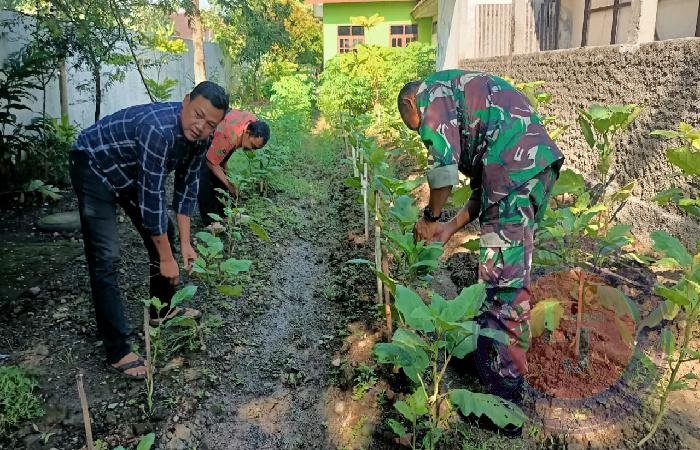 Pada kesempatan kali ini, Babinsa juga ikut membersihkan rumput dan gulma di kebun sayur.