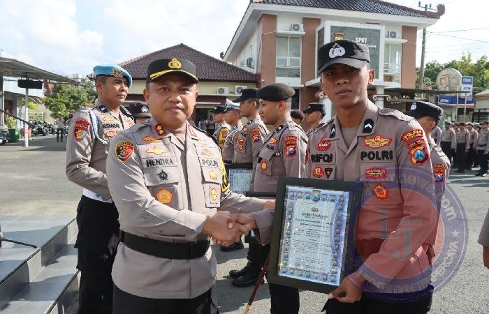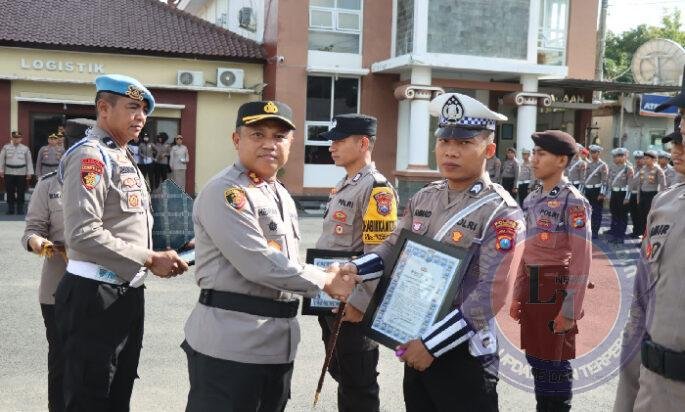 PAMEKASAN lintasjatimnews – Kapolres Pamekasan, AKBP Hendra Eko Triyulianto memberikan penghargaan kepada 10 anggota Polres dan jajaran Polsek setempat yang berprestasi mengharumkan nama Polres Pamekasan Polda Jatim.