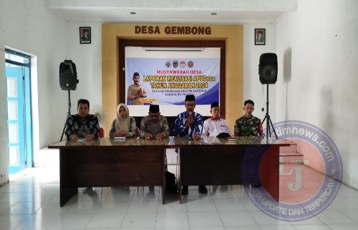 Dengan Rangkaian kegiatan pada pukul 10.00 Wib, diawali dengan pembukaan, sambutan kepala Desa Gembong, dan dilanjutkan sambutan Camat Arjosari dengan melanjutkan acara inti yaitu membacakan tentang Laporan Realisasi APBDes TA 2024.