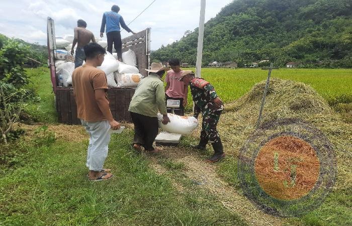 PACITAN lintasjatimnews – Saat ini upaya dalam menjaga stabilitas harga gabah di tingkat petani, Kodim 0801/Pacitan bersama Bulog Kabupaten Pacitan melaksanakan Kegiatan penyerapan Gabah hasil panen Padi dari petani, bertempat di Desa Nanggungan dan Desa Semanten, Kec/Kab Pacitan. Minggu(09/03/2025).