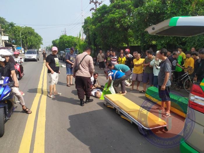 Seorang pengendara sepeda angin (ontel) tewas di tempat setelah terlibat laka dengan truk gandeng.